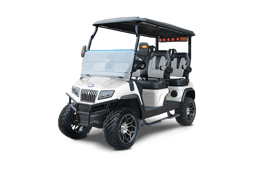 D-MAX GT4 : Crafted for those who demand both functionality and elegance in a golf cart, the D-MAX GT4 will meet your needs. Its advanced features, including a spacious four-seat configuration and high-quality, automotive-grade luxury seats with rotating armrests.