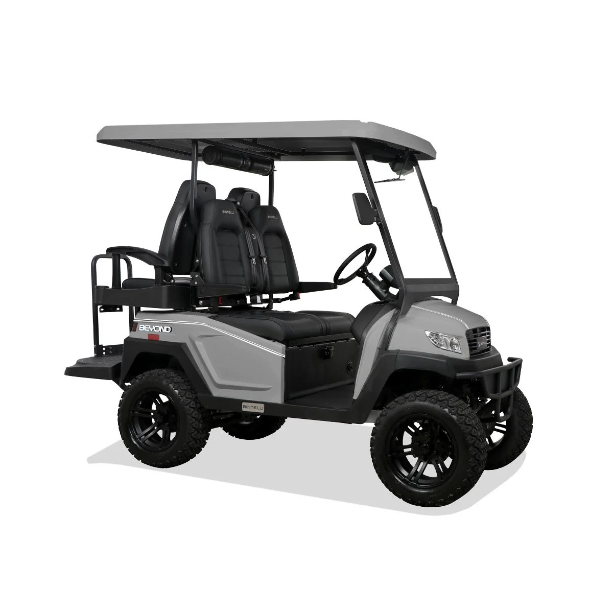 4 Seater - Non Lifted : This titanium cart is fully loaded with features. Equipped with 3 point seat belts, power steering, sound bar connected to display, armrests and more, this cart is ready for the streets, the course, or your next business venture.